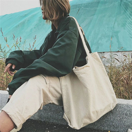 Chic Canvas Shoulder Bag: Stylish, Spacious, and Reusable